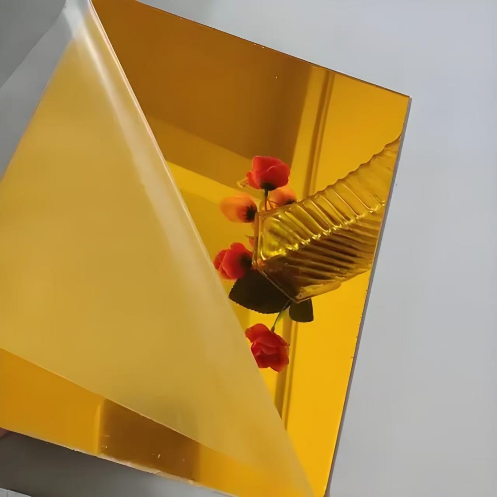 Korkea valonläpäisevyys ja heijastavuus:Kultainen peiliakryylilevy voi sekä heijastaa että siirtää valoa, mikä mahdollistaa erityisten valotehosteiden luomisen.